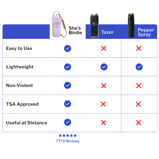 Birdie takes the lead when stacked against other self-defense tools, offering ease of use, a non-violent approach, and more.