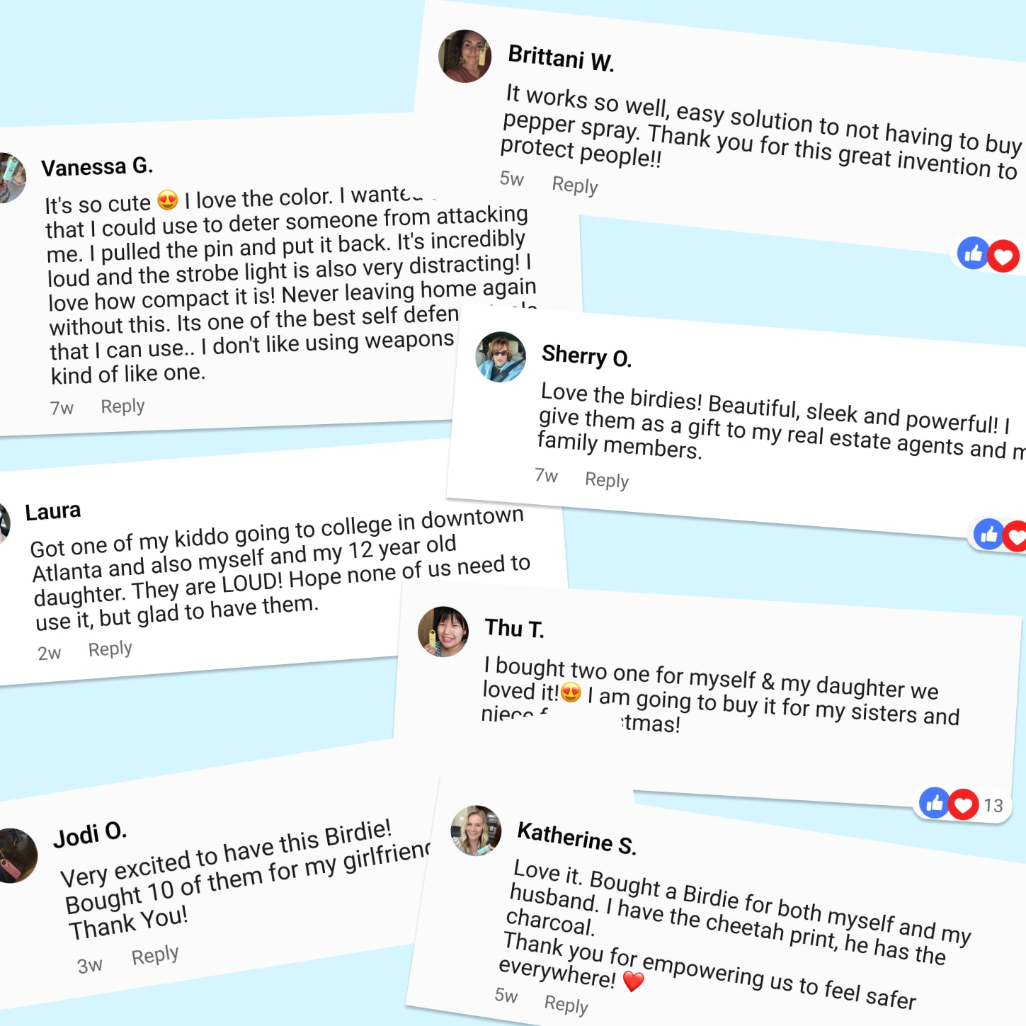 Peace of mindWe hope that you never have to use her, but you can feel safer knowing that you have Birdie on your keychain.